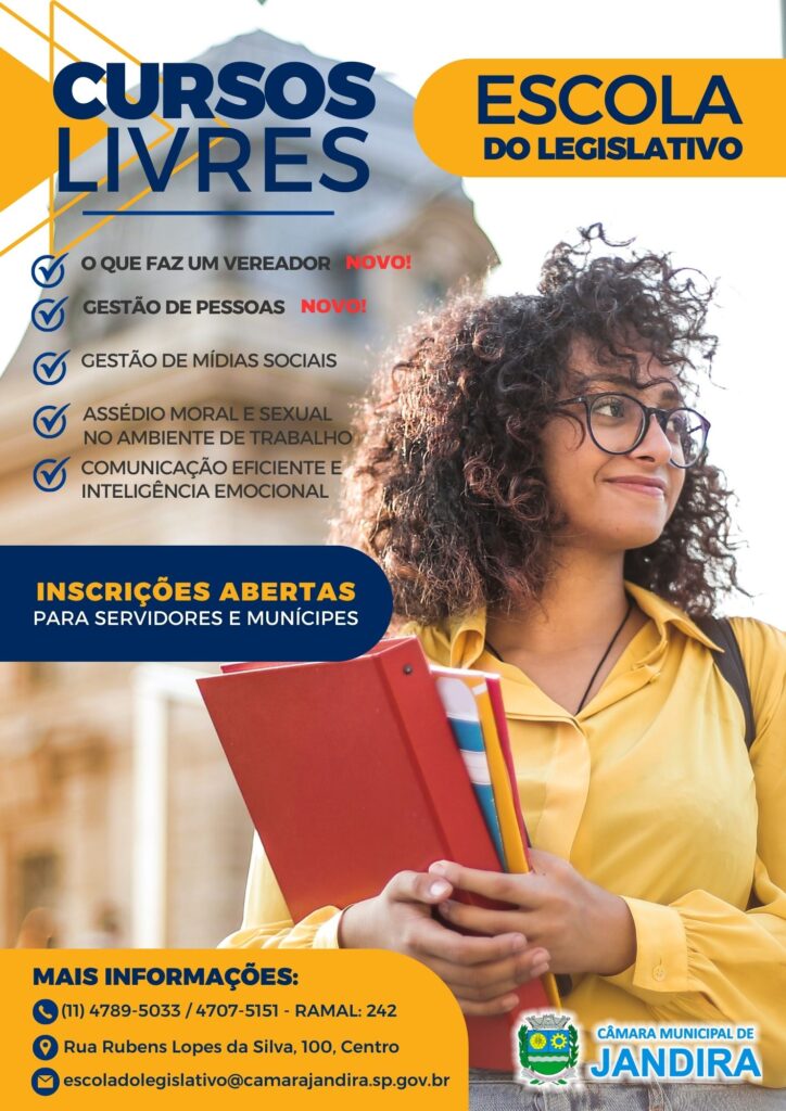 Para mais informações, acesse: https://camarajandira.sp.gov.br/escola-do-legislativo/