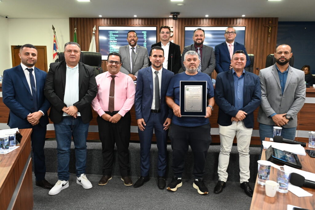 Por sua vez, o vereador Lucimar Henrique (Agir), o “Tikinho”, entregou o Título de Cidadania ao professor de história e capoeirista Marcos Robério de Brito Ferreira, mais conhecido como “Mestre Gago”, por seu papel preponderante nas áreas esportiva e cultural da região. “A capoeira é uma arte que vem dos nossos ancestrais e ter um mestre conceituado no nosso meio, como funcionário público e amigo, é de suma importância para a cidade”, comentou o parlamentar.