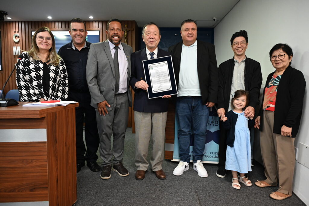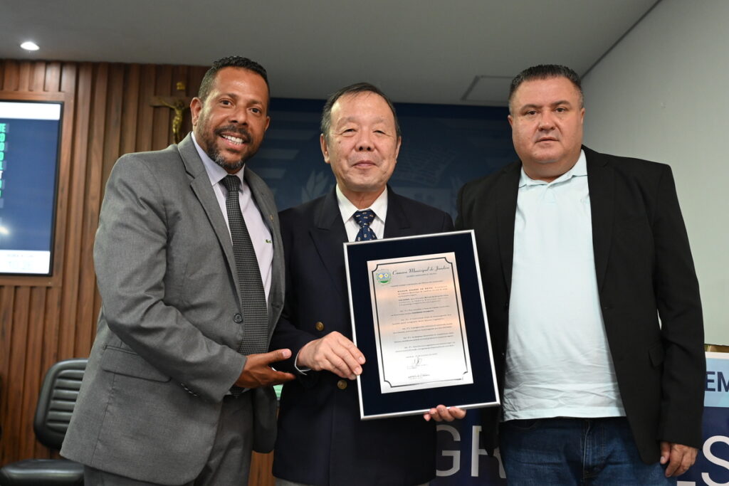 Já os parlamentares Marcos da Silva Ferreira (PSD), o “Beda”, e Gilson Rodrigues de Souza (PP), o “Pastor Gilson”, reconheceram as contribuições do senhor Yasuharu Fujimoto, imigrante japonês que se estabeleceu no município há mais de 50 anos, onde construiu sua família e seu trabalho missionário à frente da Associação Religiosa Oomoto do Brasil.