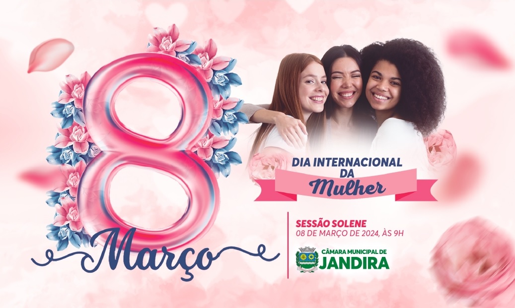 A Câmara Municipal de Jandira convida todos os cidadãos para a Sessão Solene em comemoração ao “Dia Internacional da Mulher”, que acontecerá